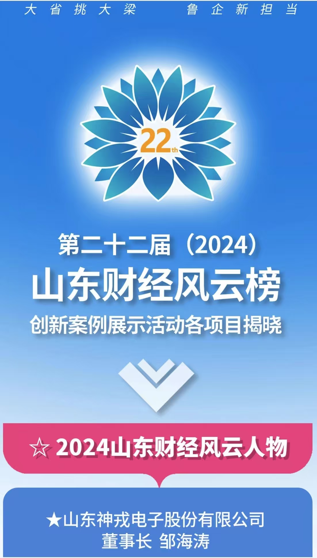 鄒海濤董事長榮獲“第二十二屆(2024)山東財(cái)經(jīng)風(fēng)云人物”[ 更多 ]